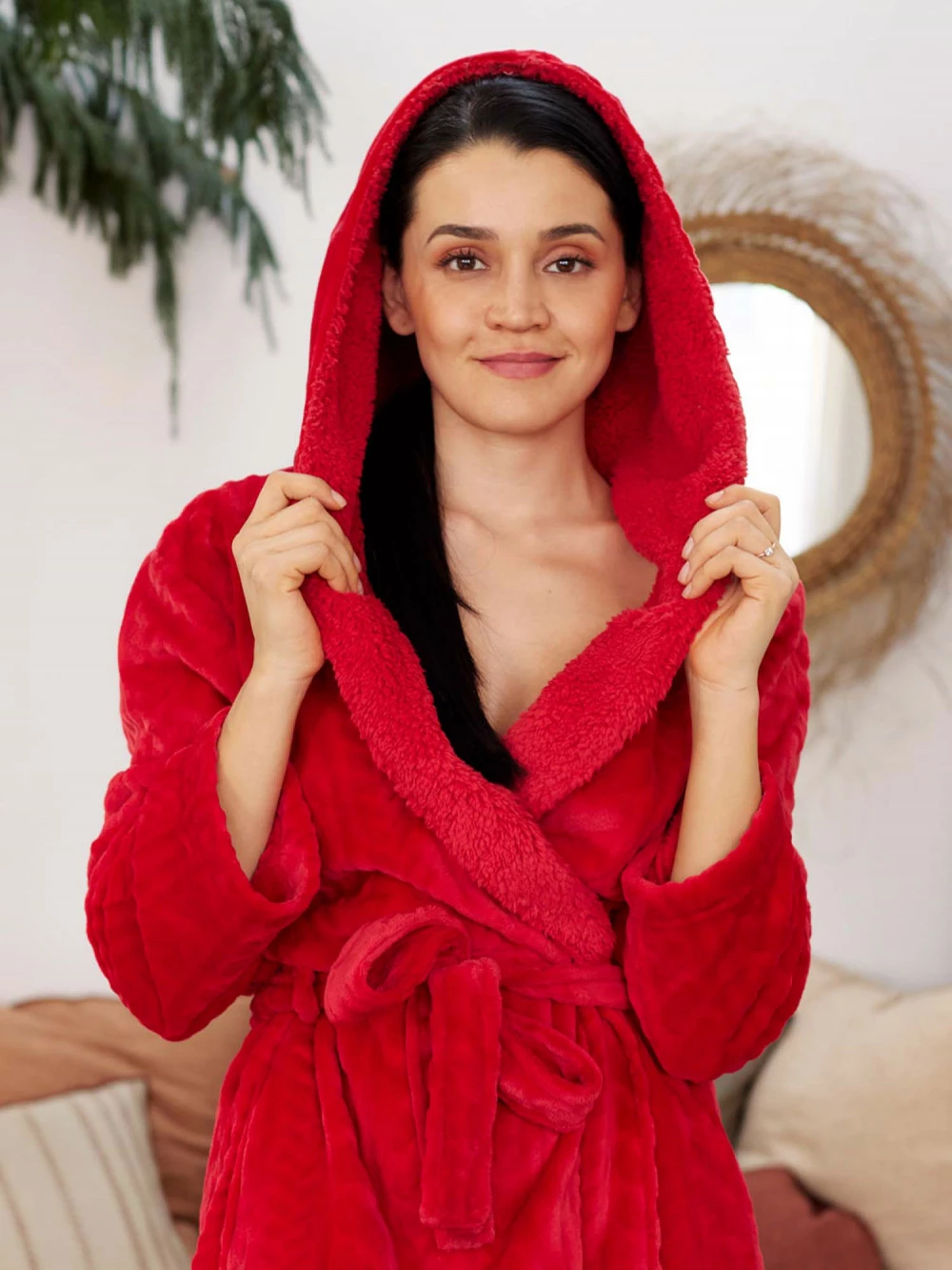 Enveloppez-vous de douceur avec ce peignoir en polaire chaud texturé avec un motif tressage.