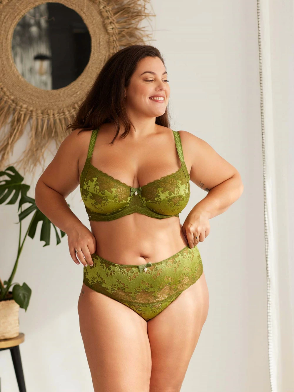 Culotte taille haute avec large bande dentelle pour la souligner
