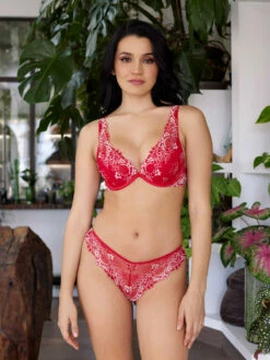 Tanga tout en dentelle pour notre modèle iconique décliné en coloris festif de noël.