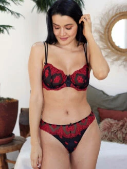 Dévoilez votre féminité avec notre soutien-gorge souple à armature Furie Noir et Rouge. Sa forme corbeille, ses brettelles spaghettis à l’avant et son laçage à l’entresein sublimeront votre poitrine.