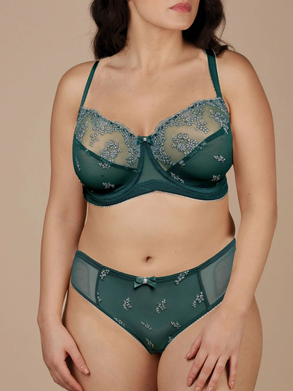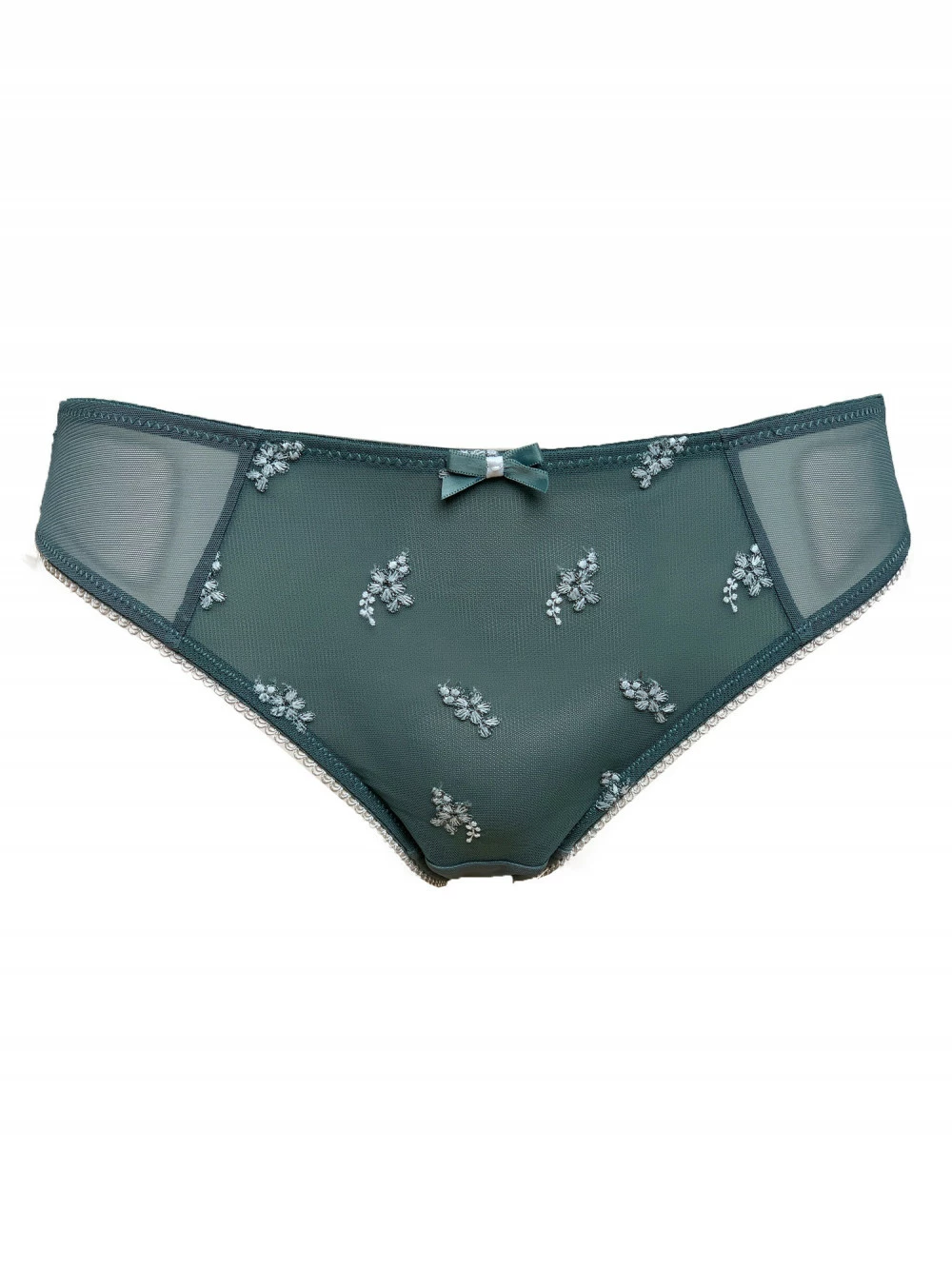 | Un thème brodé dans l’esprit floral: une jolie culotte italienne avec un dos spectaculaire. • Culotte italienne: dos spectaculaire avec une large bande en tulle brodé.