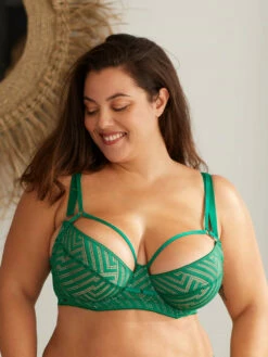 Maintien renforcé : bonnets doublés, largeur des bretelles et hauteur de l’agrafage dos adaptés, ajout d’une ½ lune à l’intérieur des bonnets et dos doublé pour les plus grandes tailles